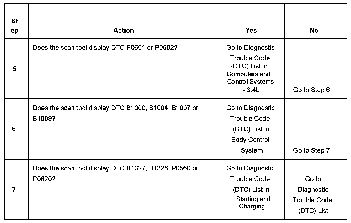 6. The presence of DTC B1000, B1004, B1007 or B1009 indicates an internal module fault.
