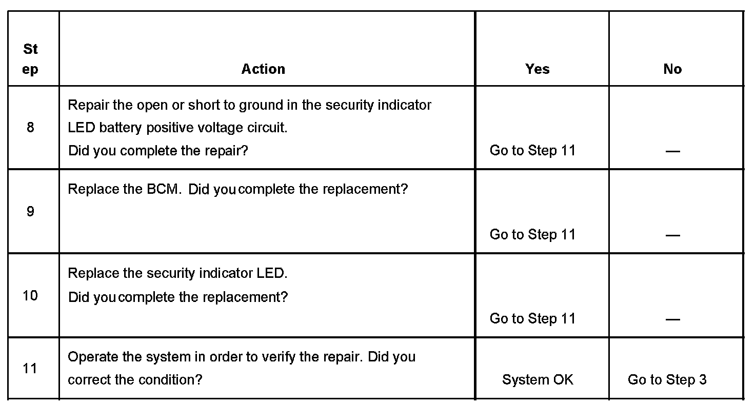 SECURITY Indicator LED Inoperative