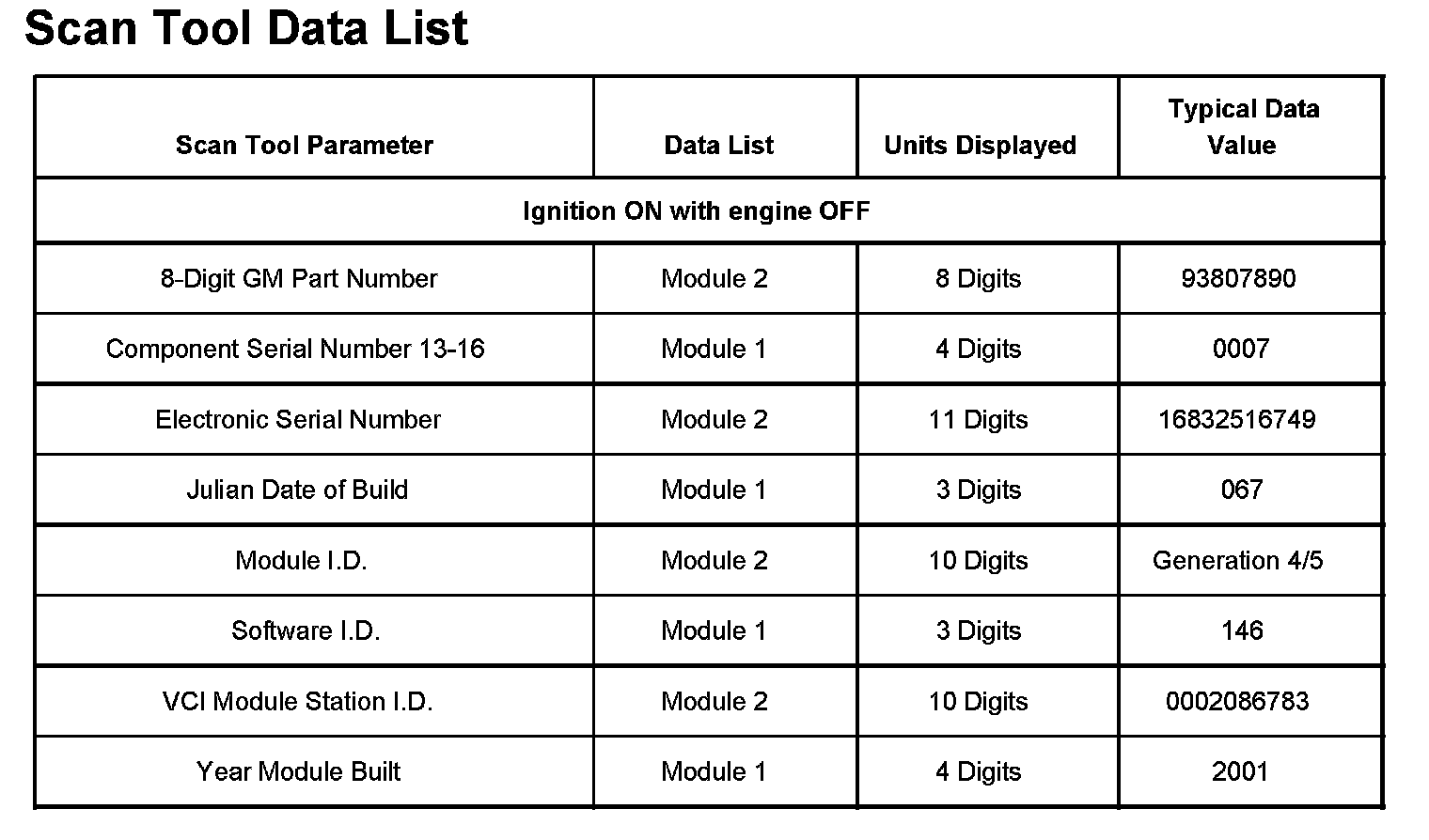 Scan Tool Data List: