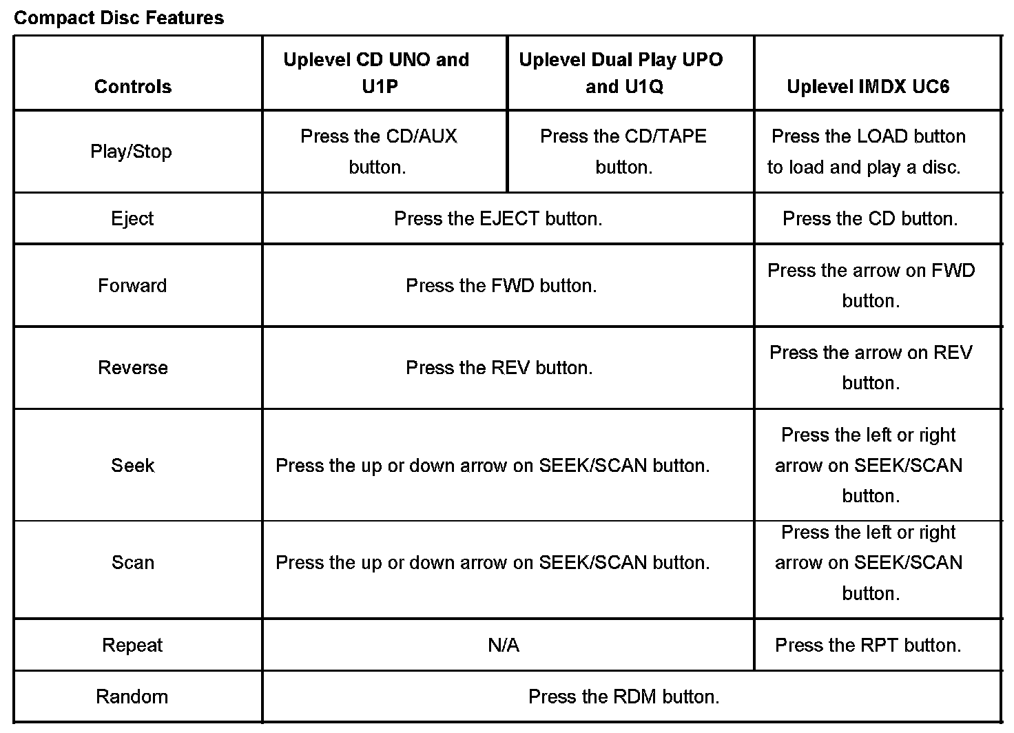 Compact Disc Player (CD): Description and Operation