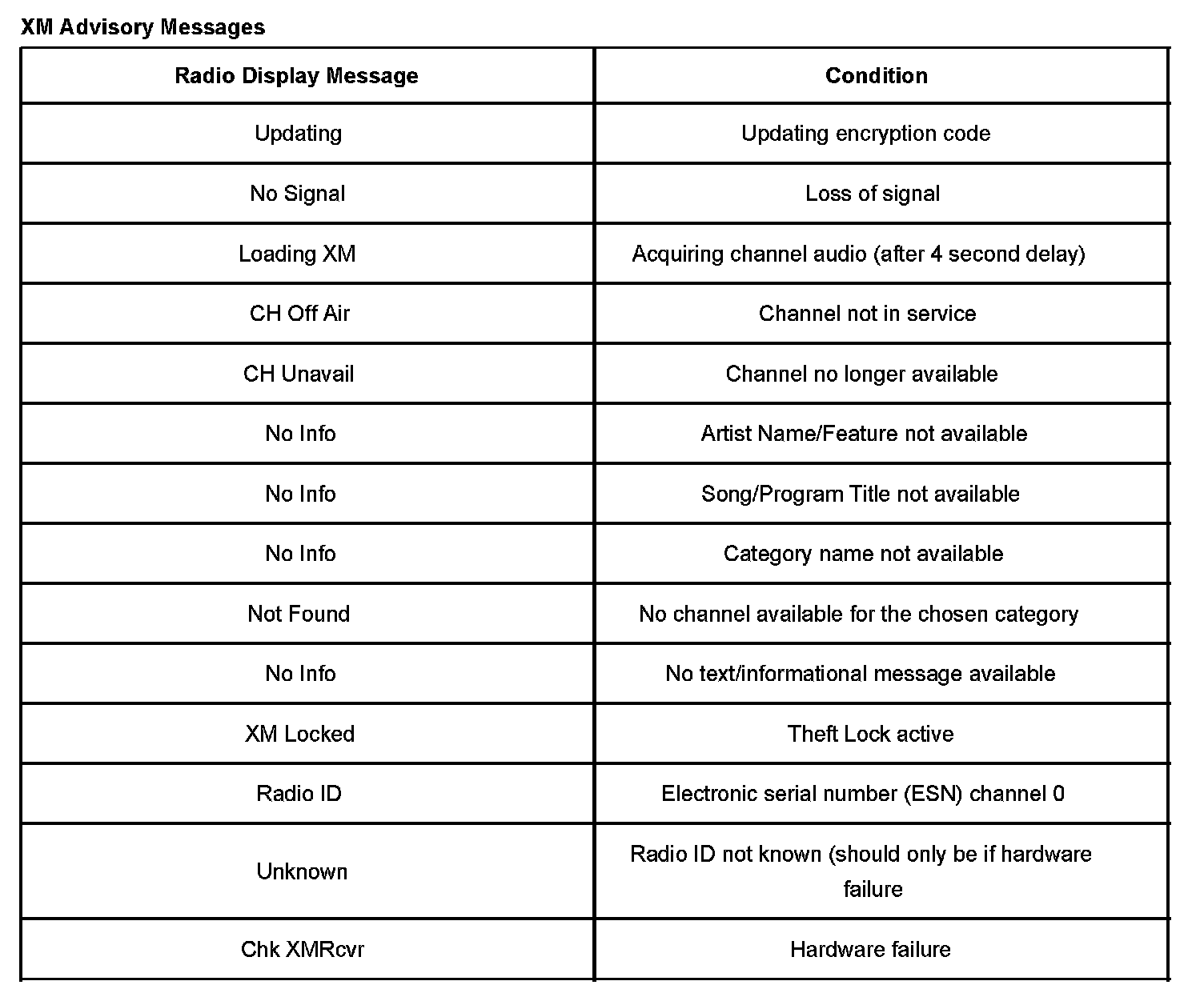 XM Advisory Messages: