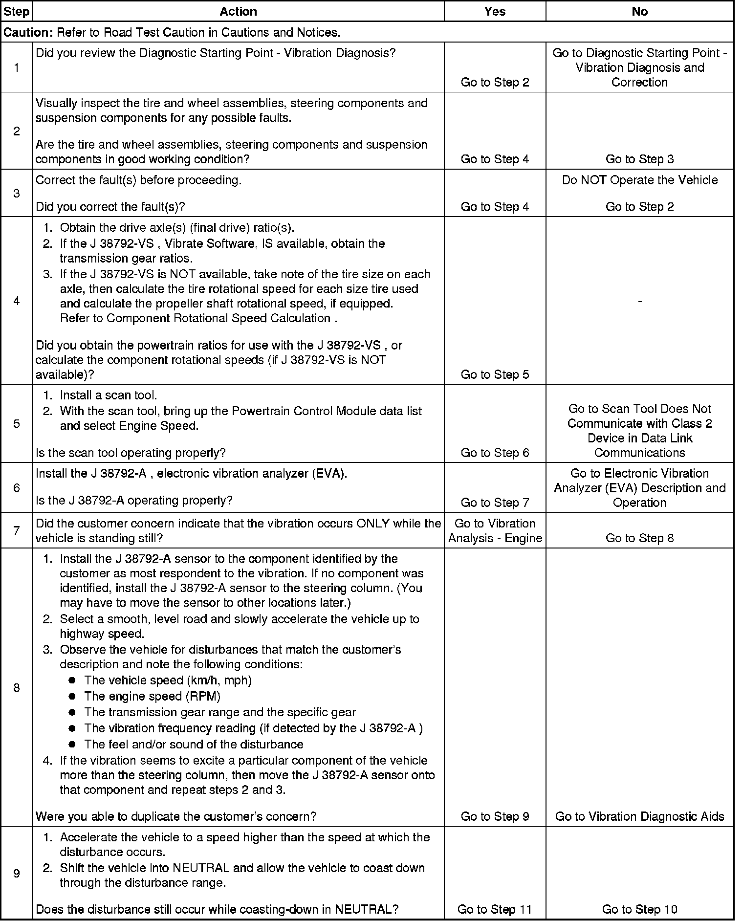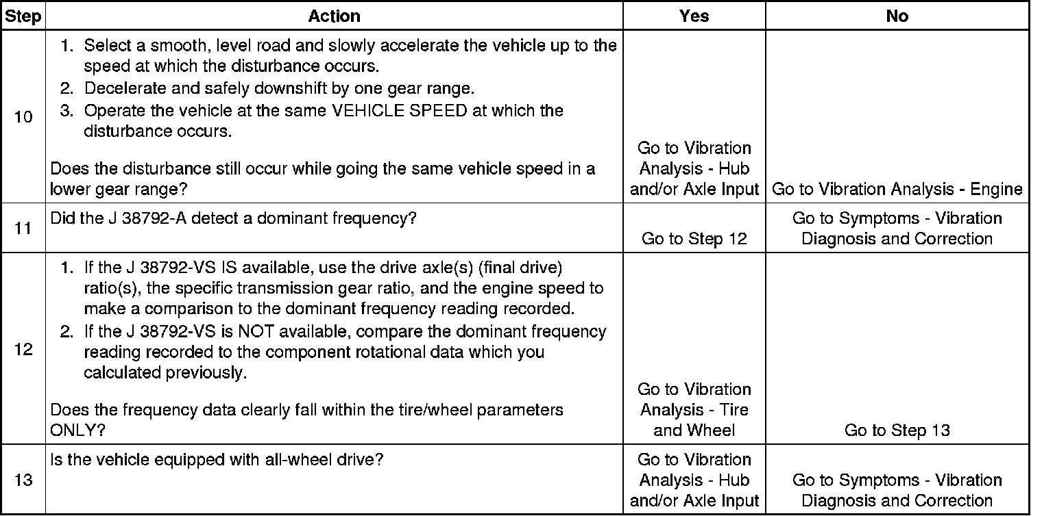 4. Obtaining rotational speed for the components rotating at both tire/wheel speed and propeller shaft speed is critical to systematically eliminating specific vehicle component groups. (These component rotational speeds can be generated by using the J 38792-VS , Vibrate Software, or through calculating them manually.)