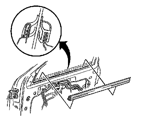 3. Remove the front door inner belt window sealing strip by lifting off the pinch-weld flange.