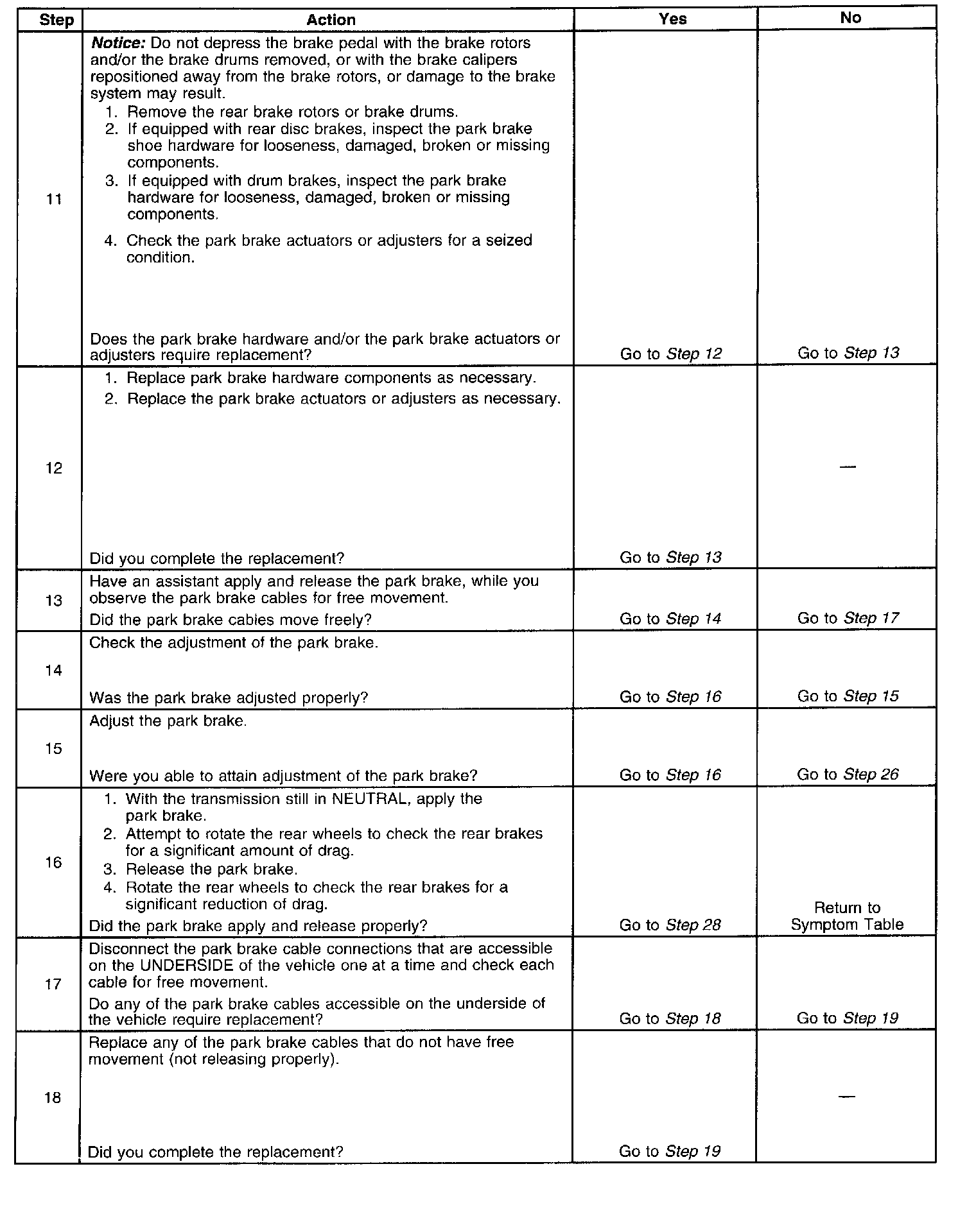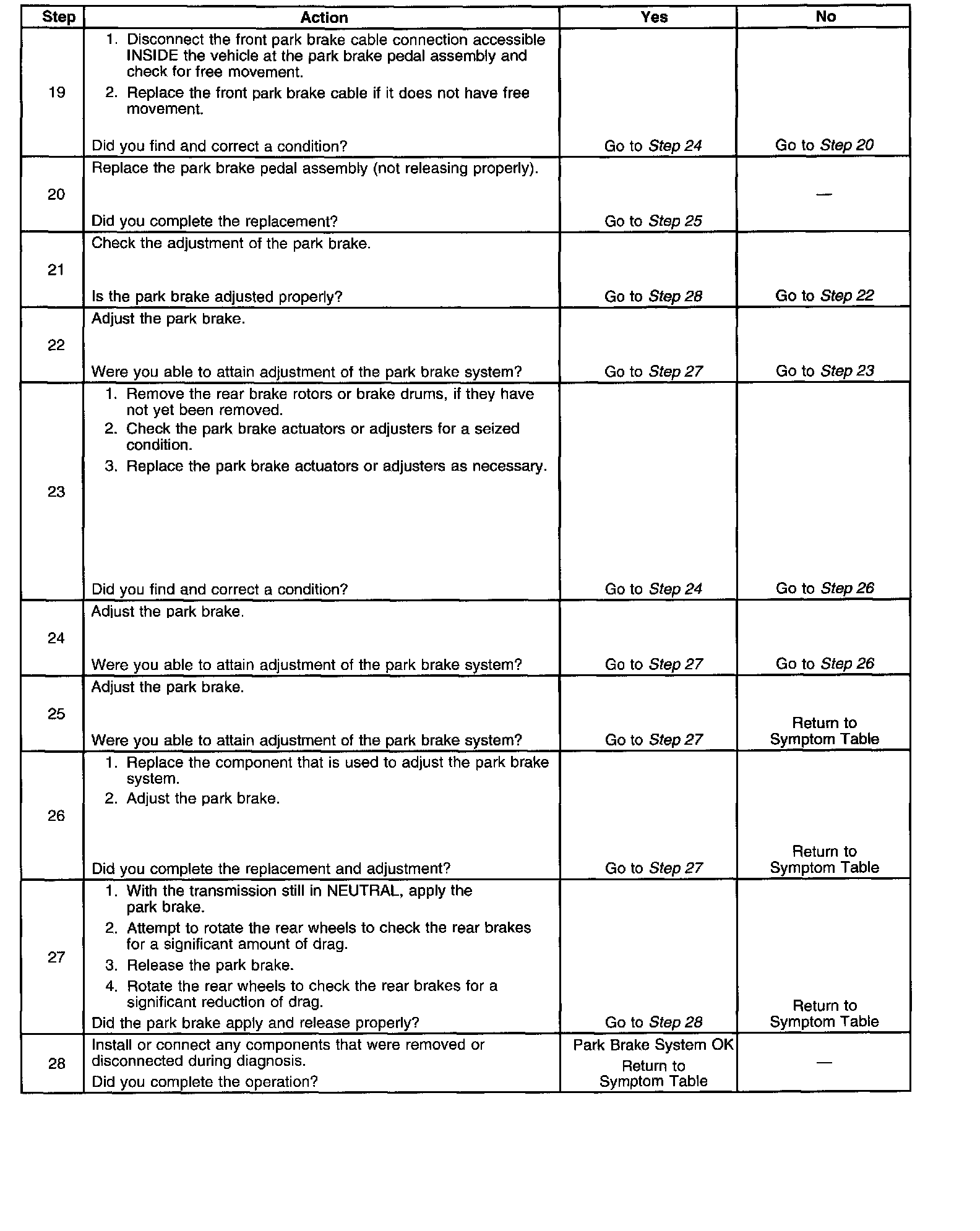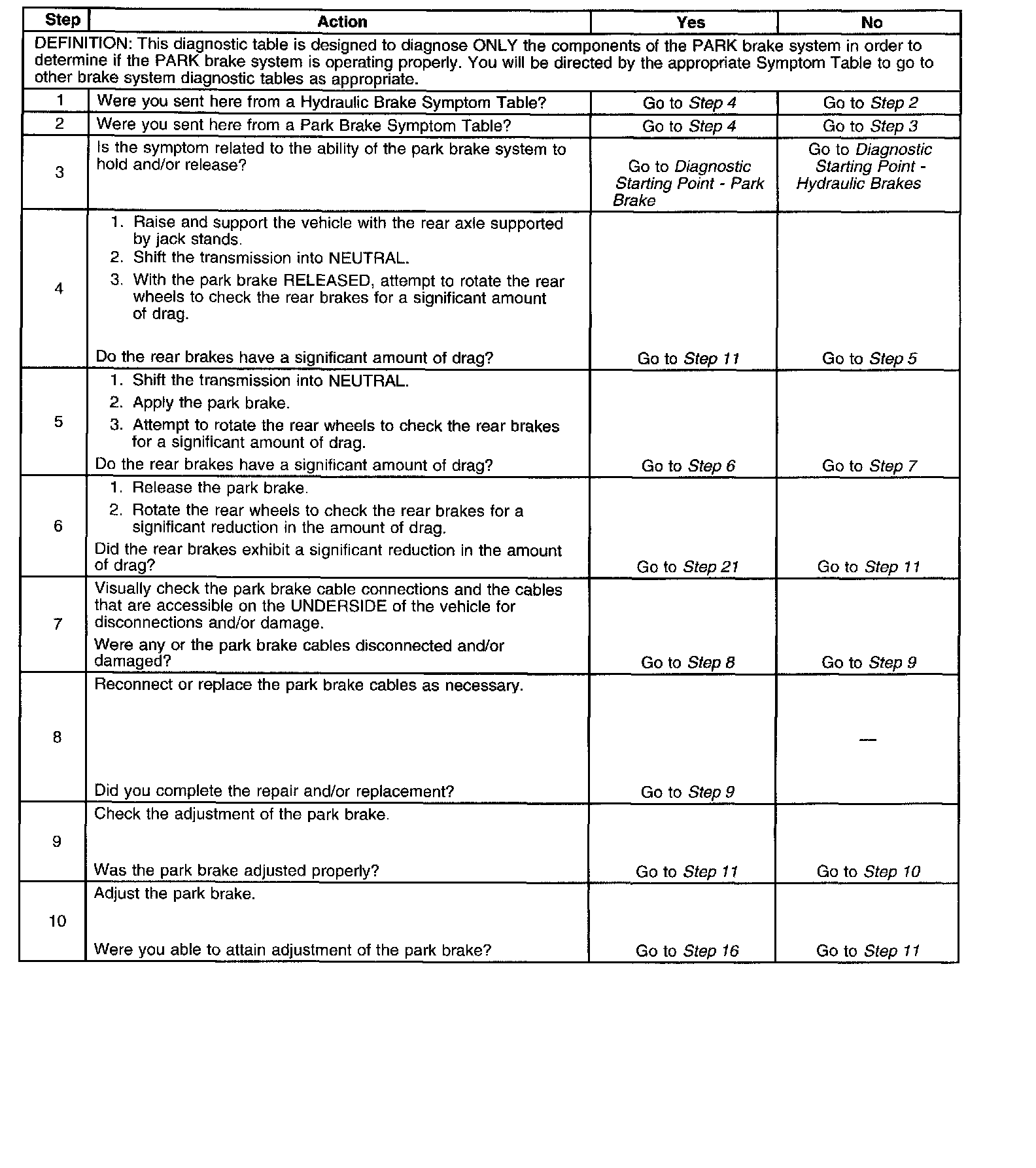 Park Brake System Diagnosis
