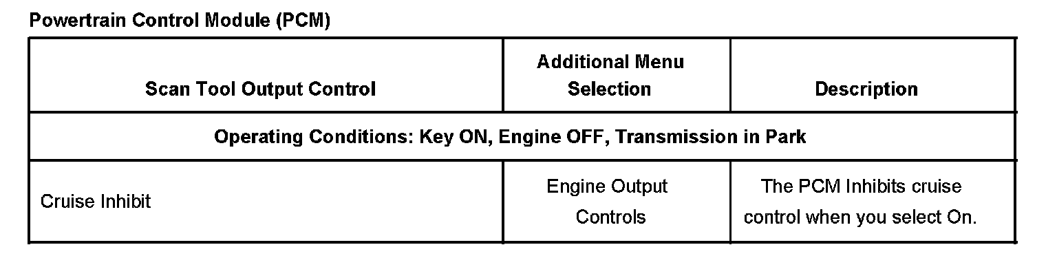 Scan Tool Output Controls - Powertrain Control Module (PCM):