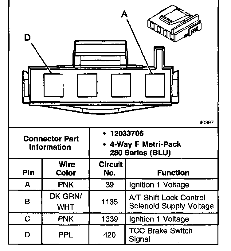 Stop Lamp Switch/TCC Switch Connector, Wiring Harness Side: