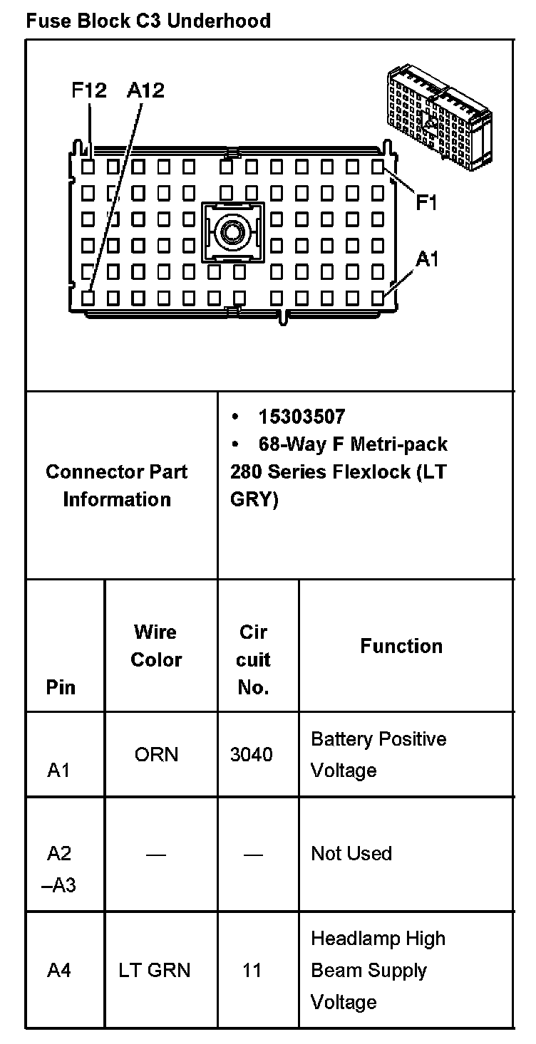 Fuse Block C3 Underhood Part 1: