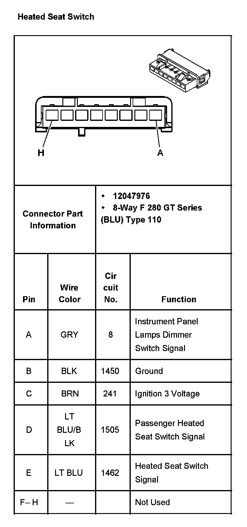 Heated Seat Switch: