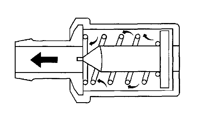 The primary control is through the Positive Crankcase Ventilation (PCV) valve which meters the flow at a rate depending on inlet vacuum. To maintain idle quality, the PCV valve restricts the flow when inlet vacuum is high. If abnormal operating conditions arise, the system is designed to allow excessive amounts of blow by gases to back flow through the crankcase vent into the throttle body to be consumed by normal combustion.
