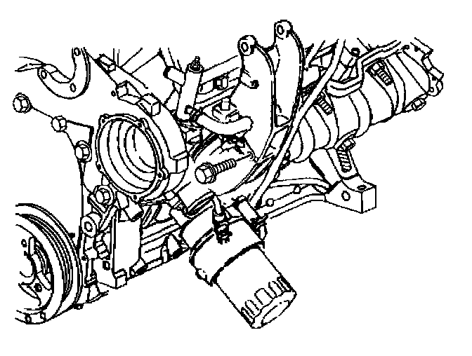 6. Install the oil cooler pipe bracket bolt through the oil cooler pipe bracket into the right engine mount strut bracket.