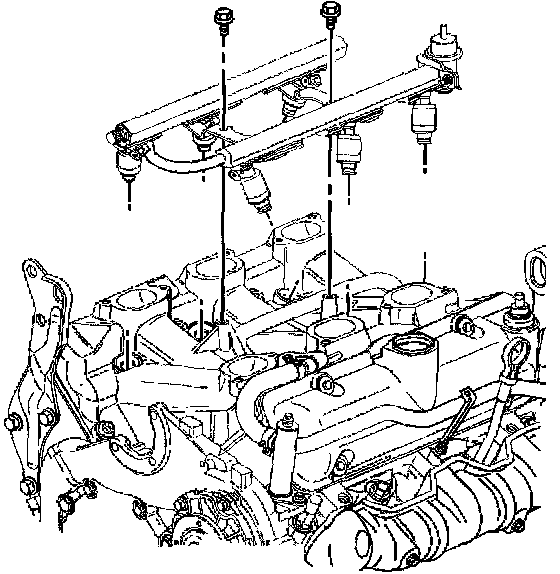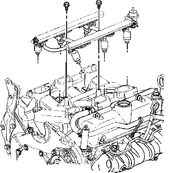 6. Remove the fuel feed and return pipe from the fuel injector rail.