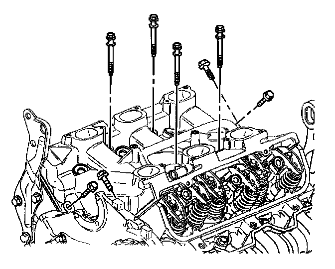 8. Apply sealer GM P/N 12345382 or the equivalent to the lower intake manifold bolt threads.