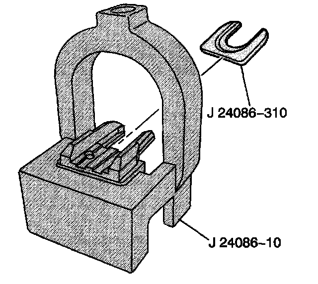 2. Install fork insert J 24086-310 into fixture J 24086-10 Piston Pin Remover/Installer Base.