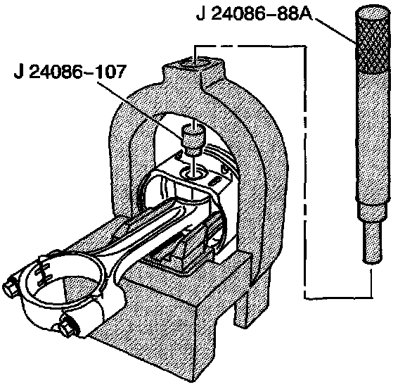 4. Install the J 24086-107 onto the piston pin and J 24086-88A through the fixture and onto J 24086-107.