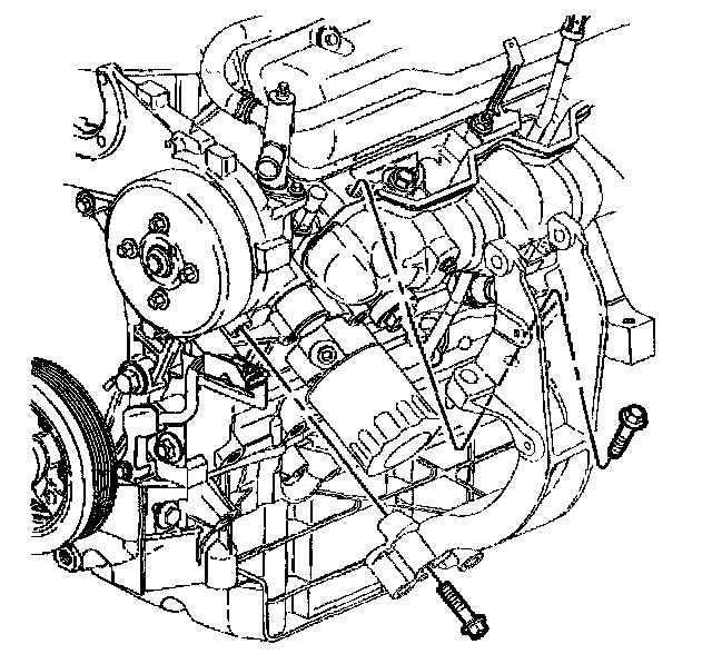 Engine Mount Strut and Air Conditioning Compressor Bracket Removal1. Remove the engine mount strut and A/C compressor bracket bolts.