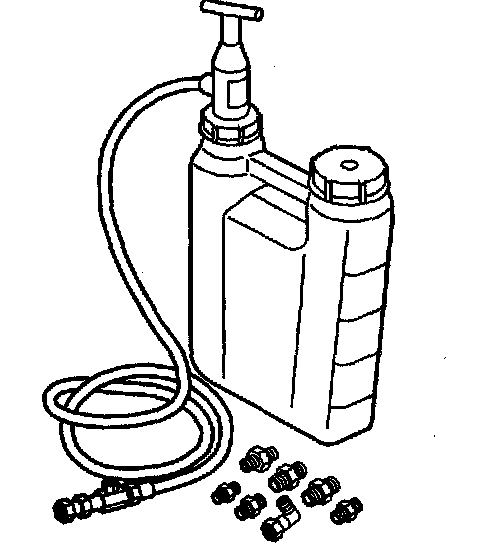 6. Pump the handle on the J 45299 in order to flow a minimum of 1-1.9 liters (1-2 quarts) of engine oil. Observe the flow of engine oil through the flexible hose and into the engine assembly.