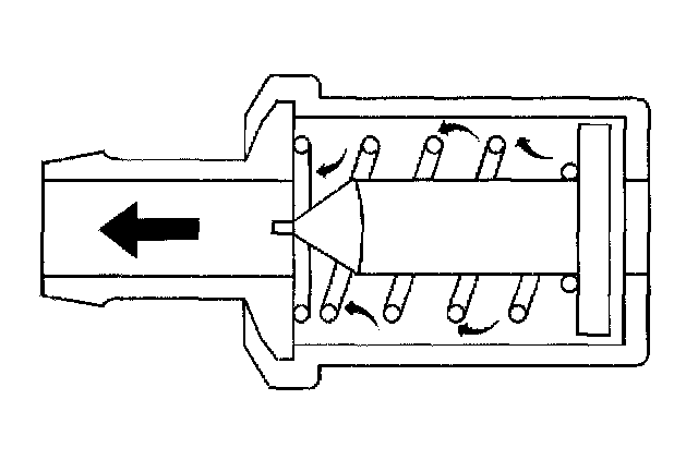 4. Turn OFF the engine. Remove the crankcase ventilation valve. Shake the valve. Listen for the rattle of the check needle inside of the valve. If valve does not rattle, replace the valve.