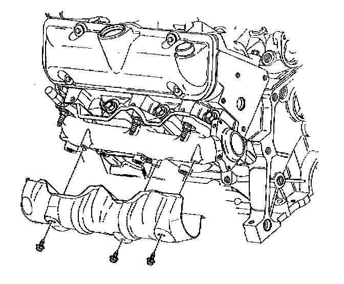 7. Remove the exhaust manifold heat shield bolts.