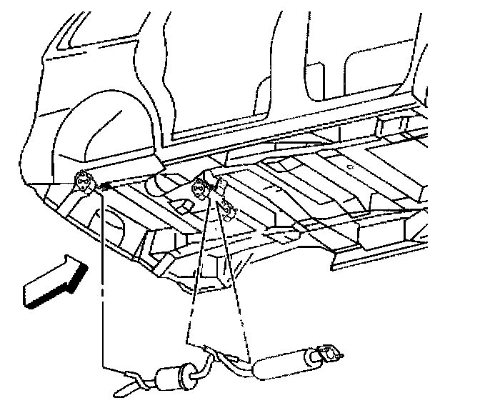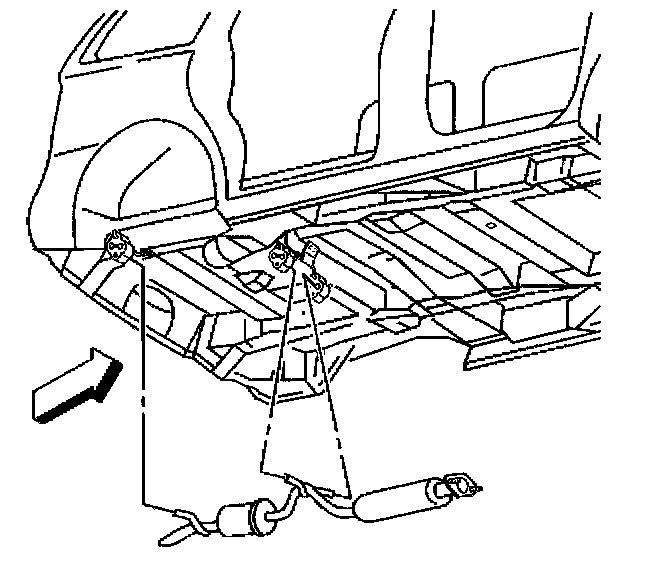 1. Install the muffler and exhaust pipes over the rear axle and towards the rear of the vehicle.