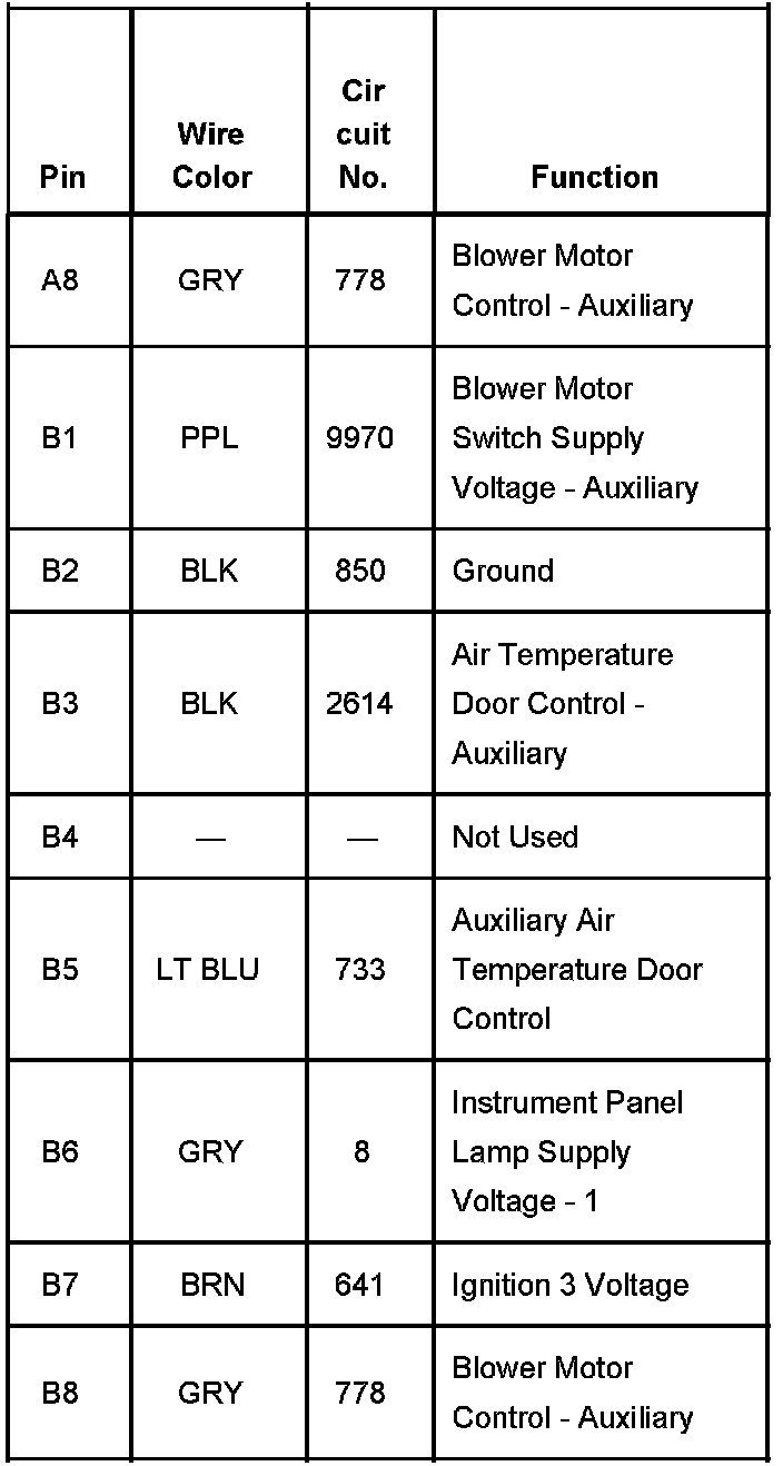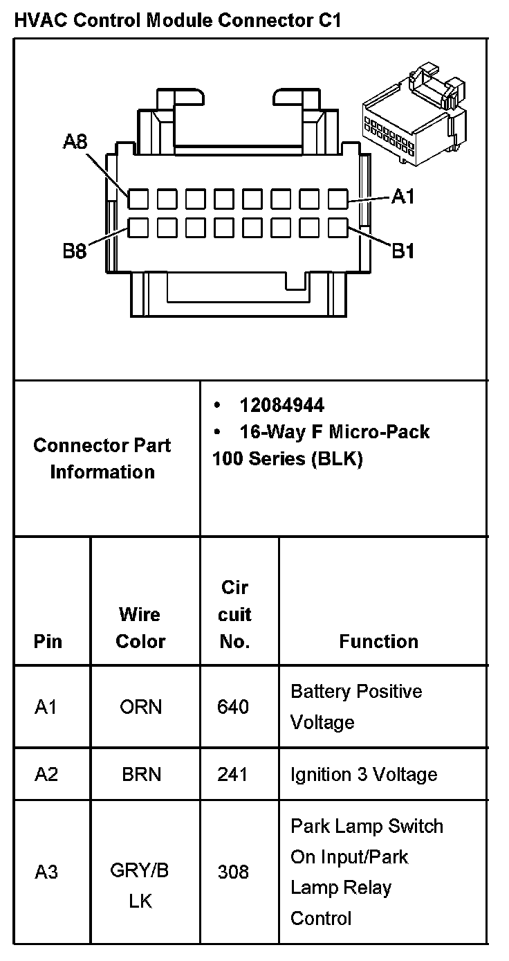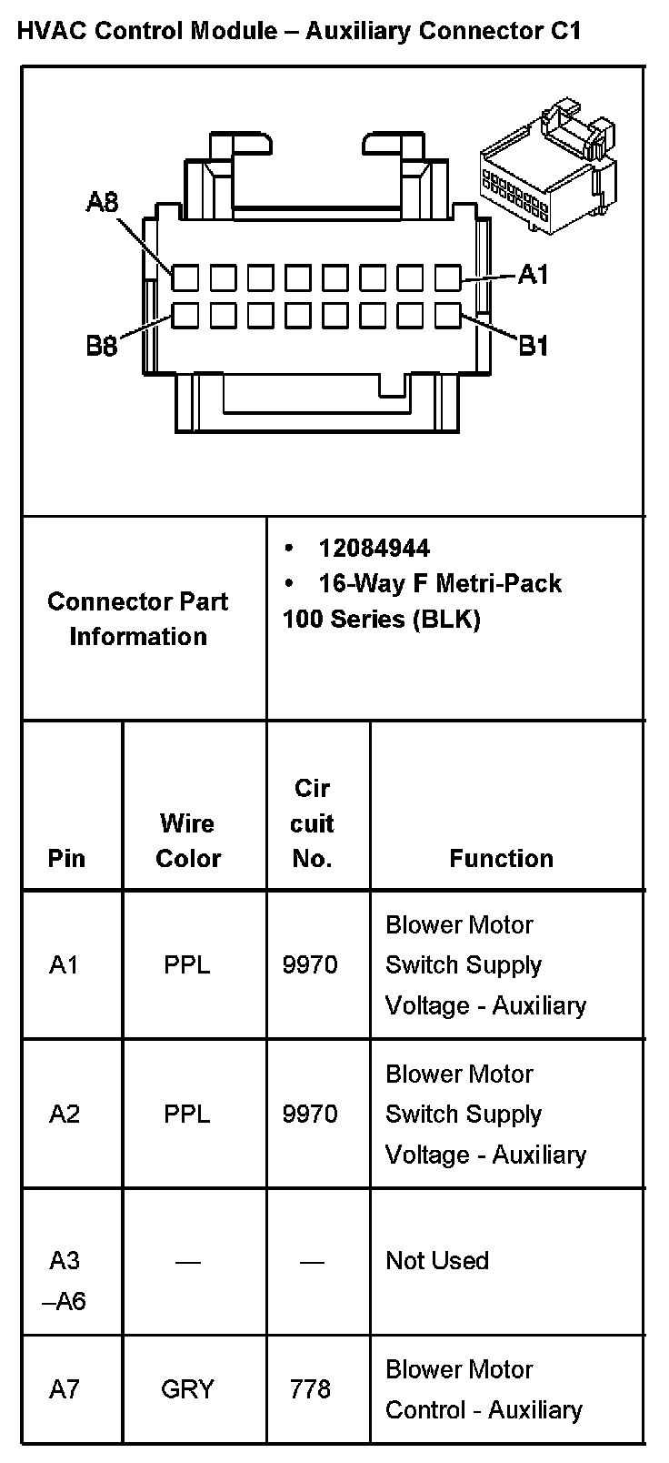 HVAC Control Module - Auxiliary Connector C1 Part 2: