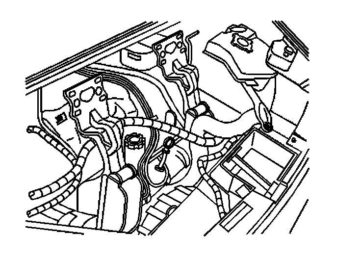 4. Install the right hand engine mount strut bracket brace bolts to the upper radiator support.
