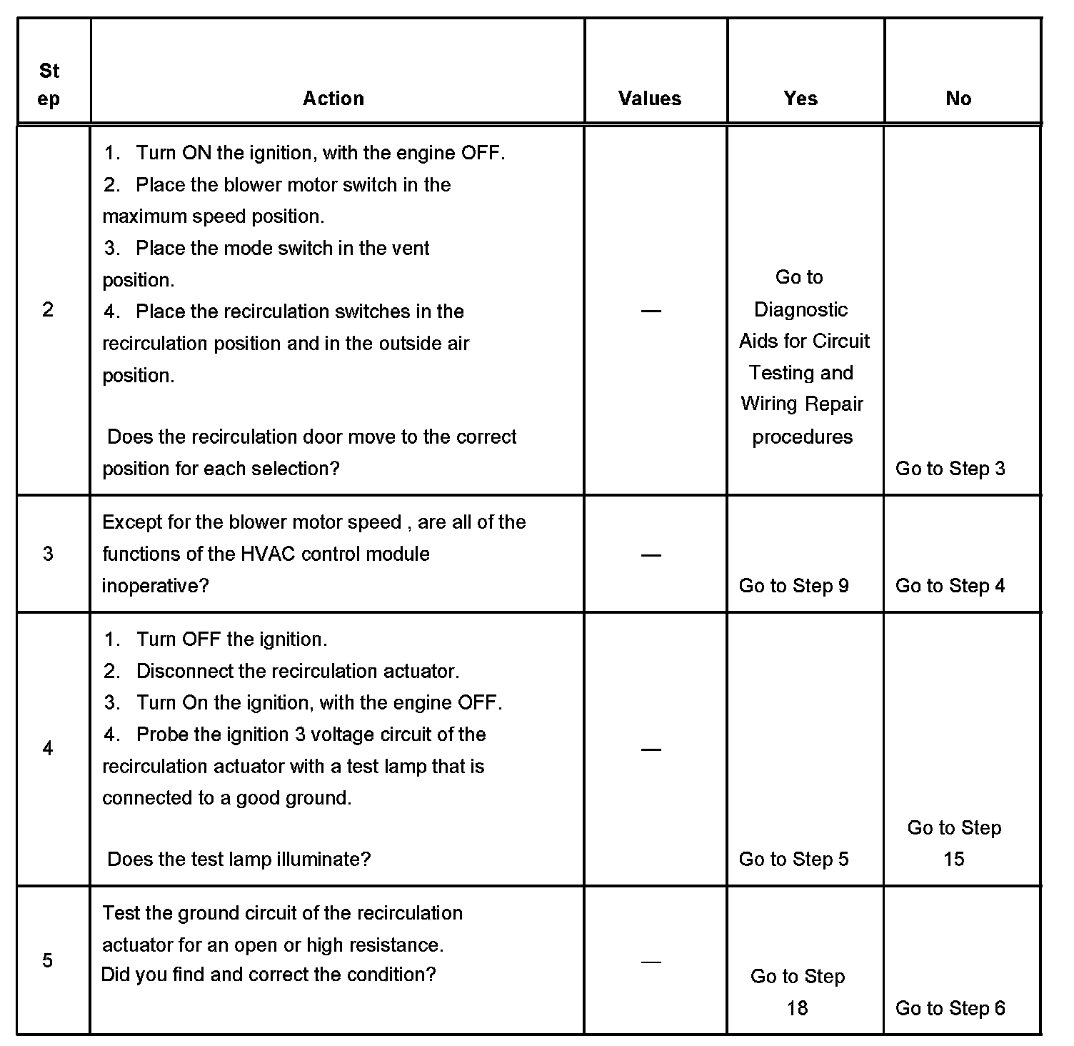 AIR RECIRCULATION MALFUNCTIONTEST DESCRIPTION