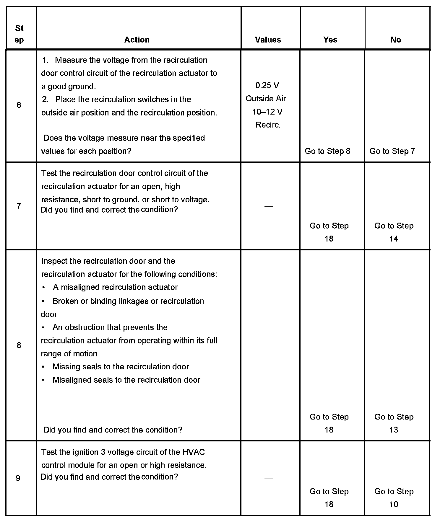 The number below refers to the step number on the diagnostic table.