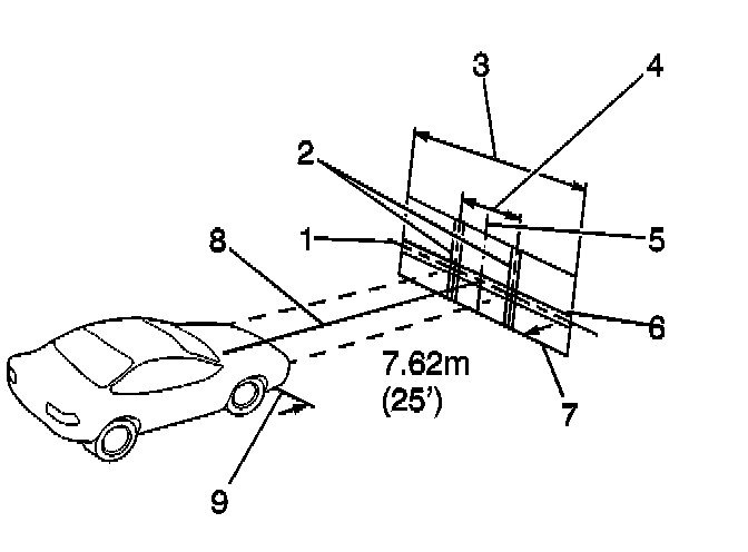 - After the aiming screen has been set up in its permanent location, paint a reference line on the floor directly under the lens of the lamps to indicate the proper location of the headlamps when they are being aimed:
