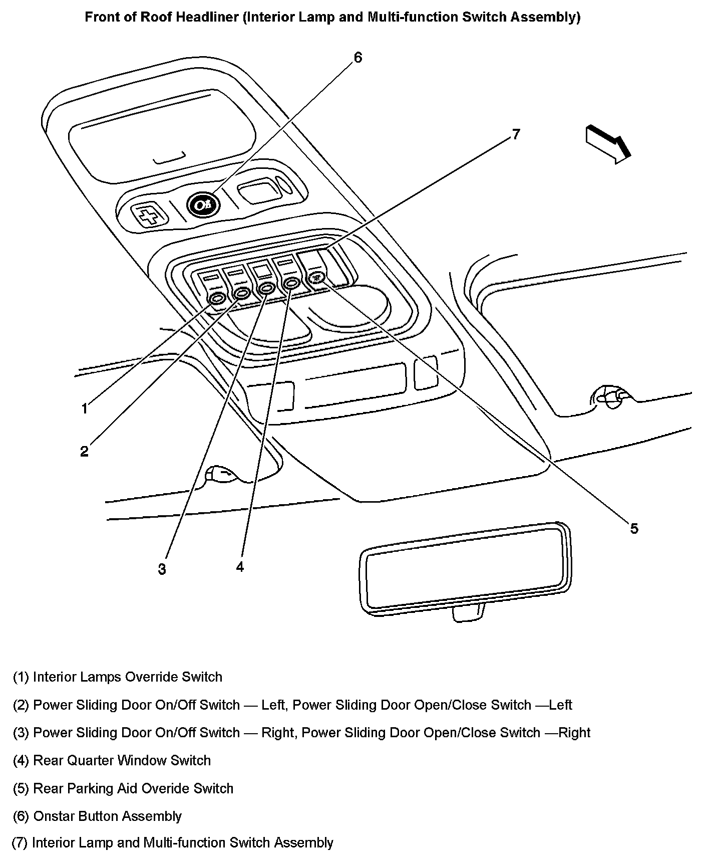 Front Of Roof Headliner (Interior Lamp And Multi-function Switch Assembly):