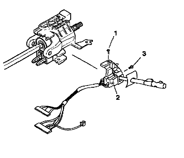 6. Remove the 2 pan head tapping screws (1) and (3) from the turn signal and multifunction switch assembly (2).