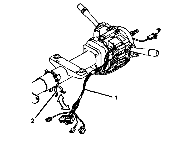 1. Install the turn signal and multifunction switch assembly (2) onto the steering column tilt head assembly.