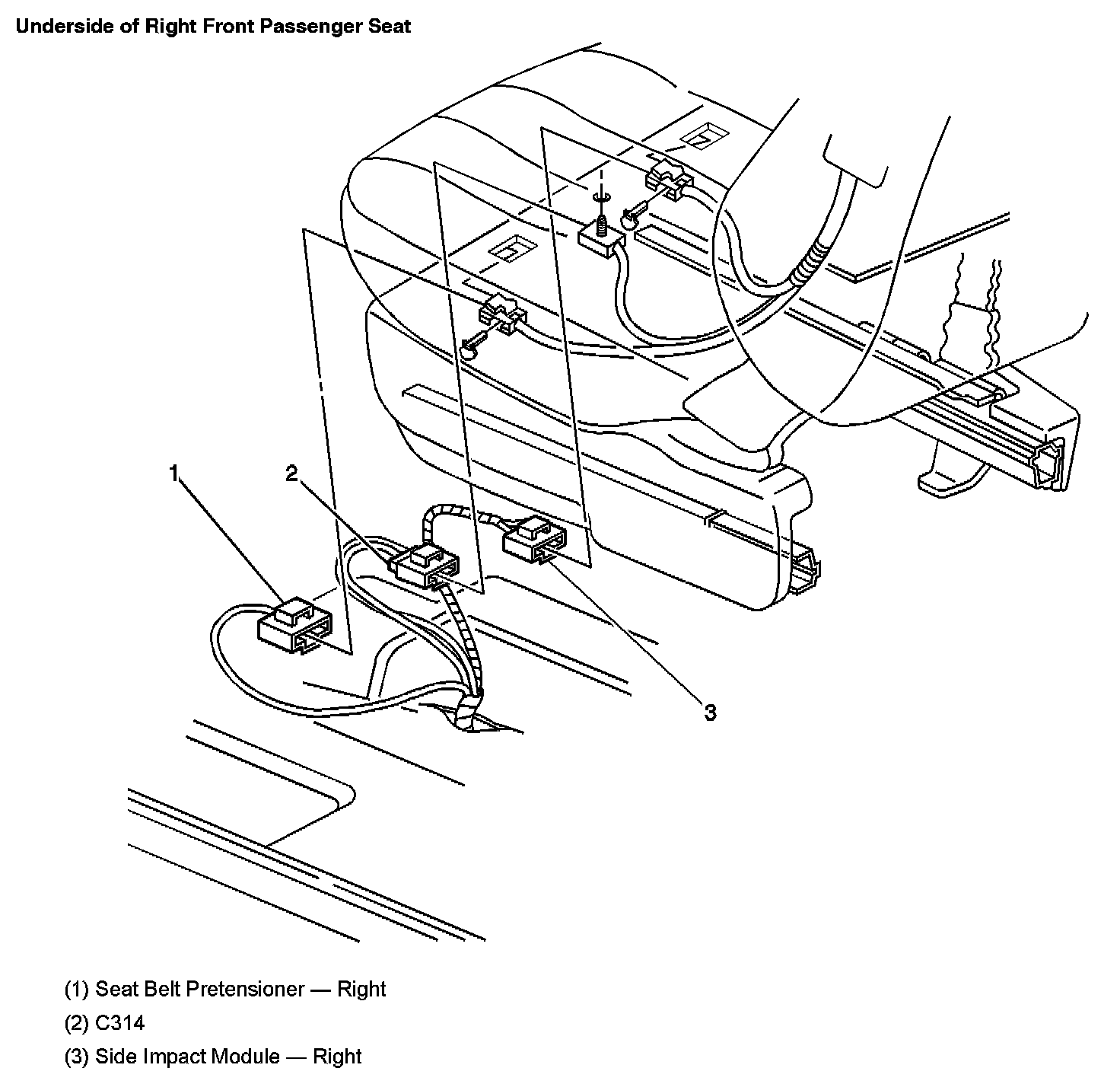 Underside of Right Front Passenger Seat: