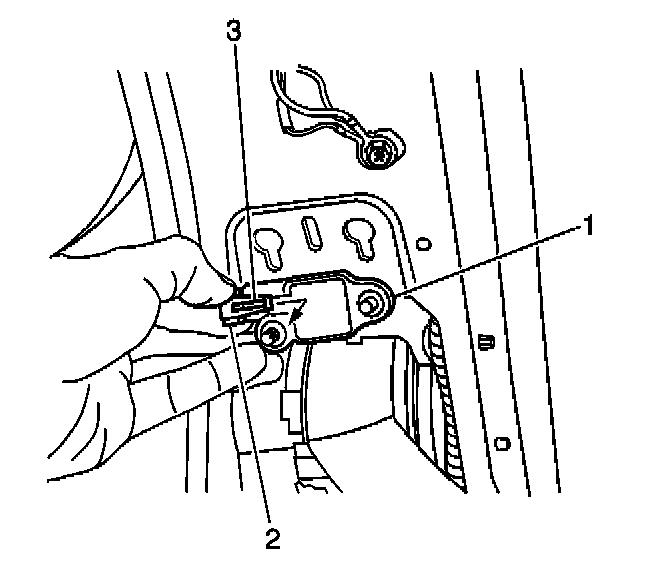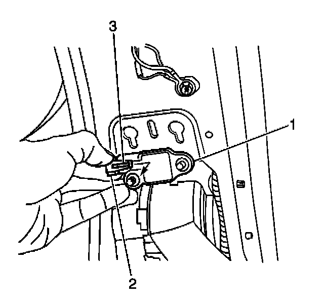 6. Remove the connector position assurance (CPA) (3) from the SIS-LF yellow 2-way connector (2) located near the bottom of the left side B-Pillar.