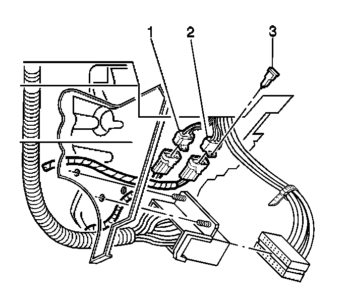 13. Install the CPA to the seat belt pretensioner - RF yellow 2-way connector (3).