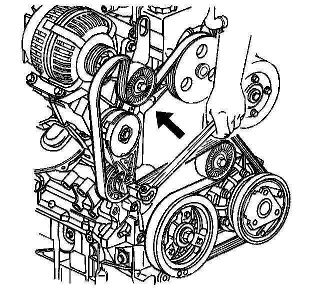Important: Ensure that the drive belt is aligned into the proper grooves of the accessory drive belt pulleys.