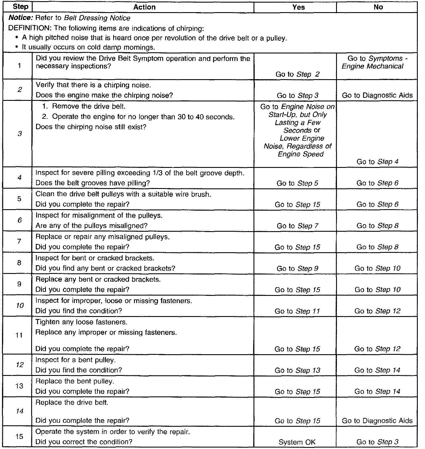 Drive Belt Chirping DiagnosisDiagnostic Aids