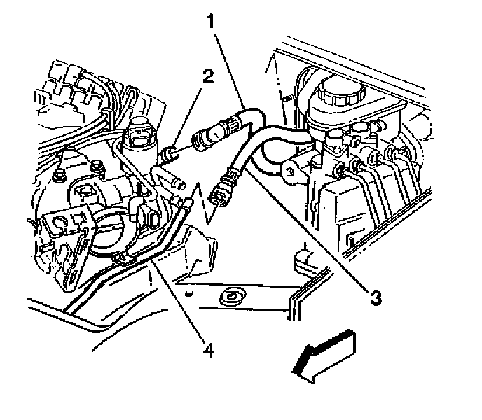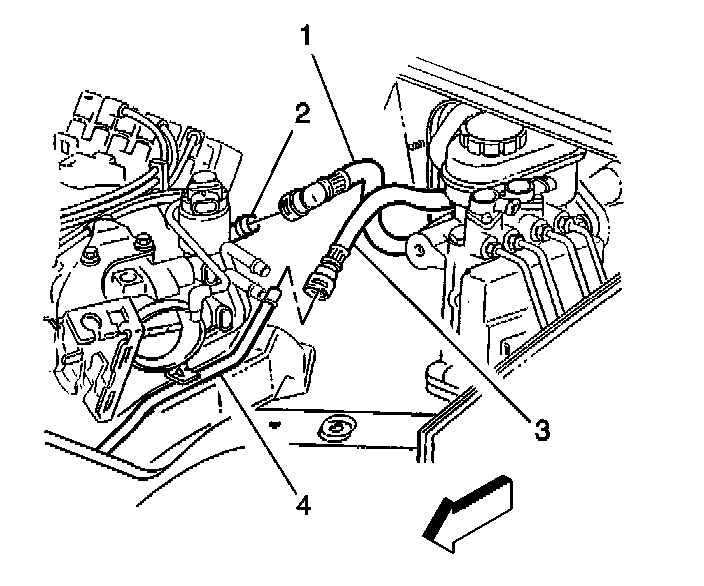 4. Disconnect the inlet heater hose (1) from the inlet pipe (2).