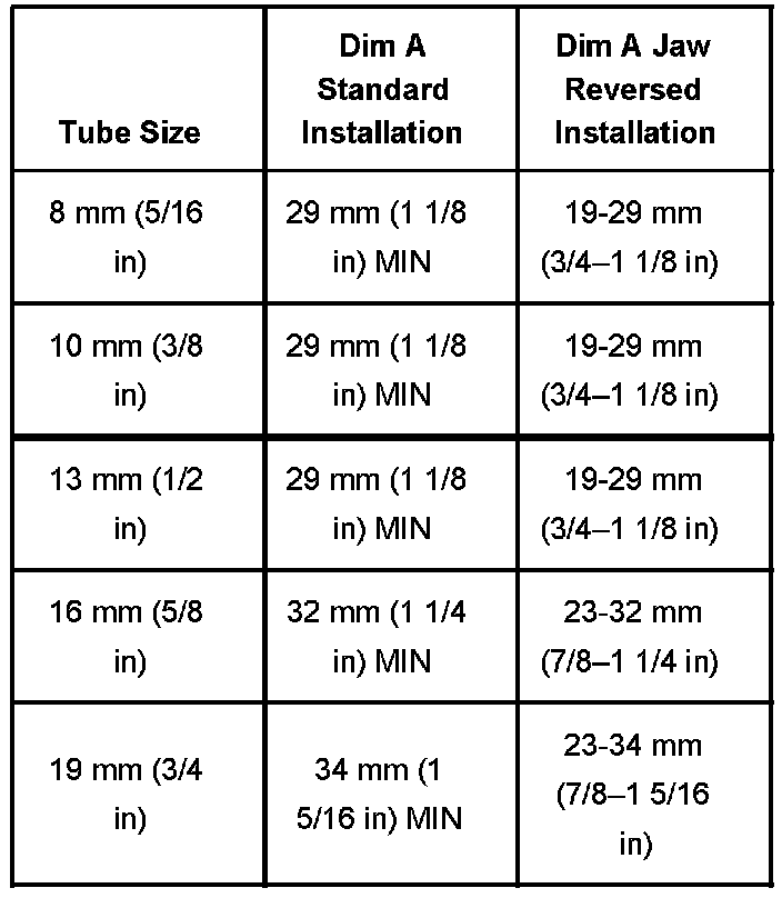 Minimum Tube Length Required Table: