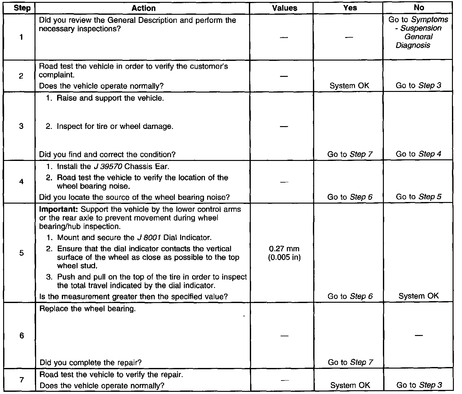 Wheel Bearings Diagnosis Step 1 - 7: