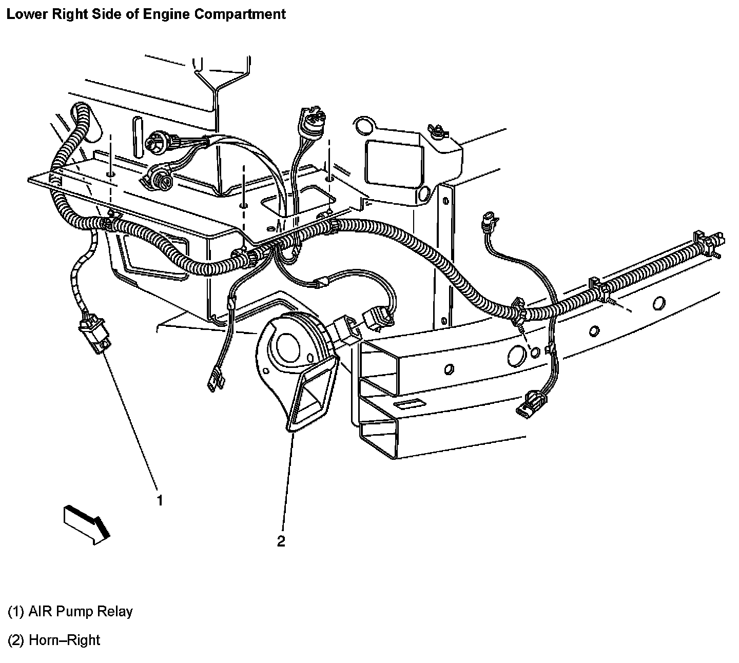 Lower Right Side Of Engine Compartment: