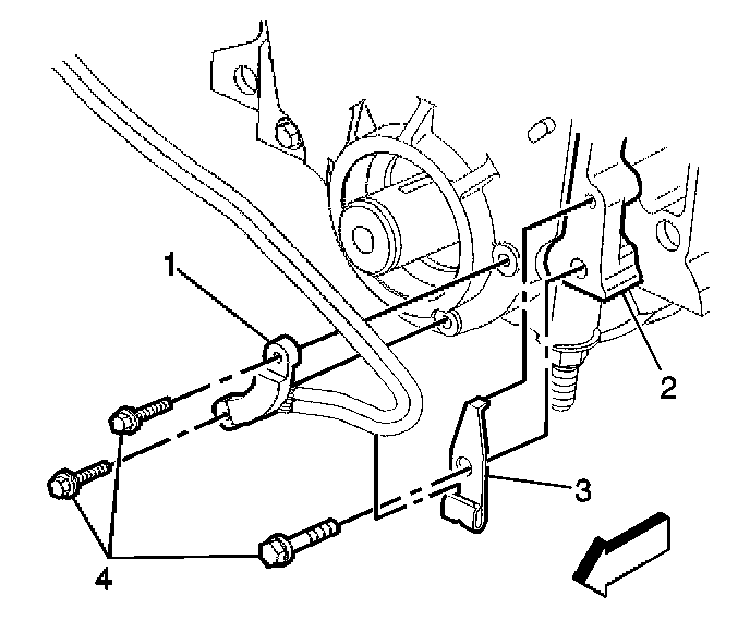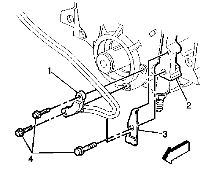 6. Remove the harness retaining clip (3) with the bolt (4).