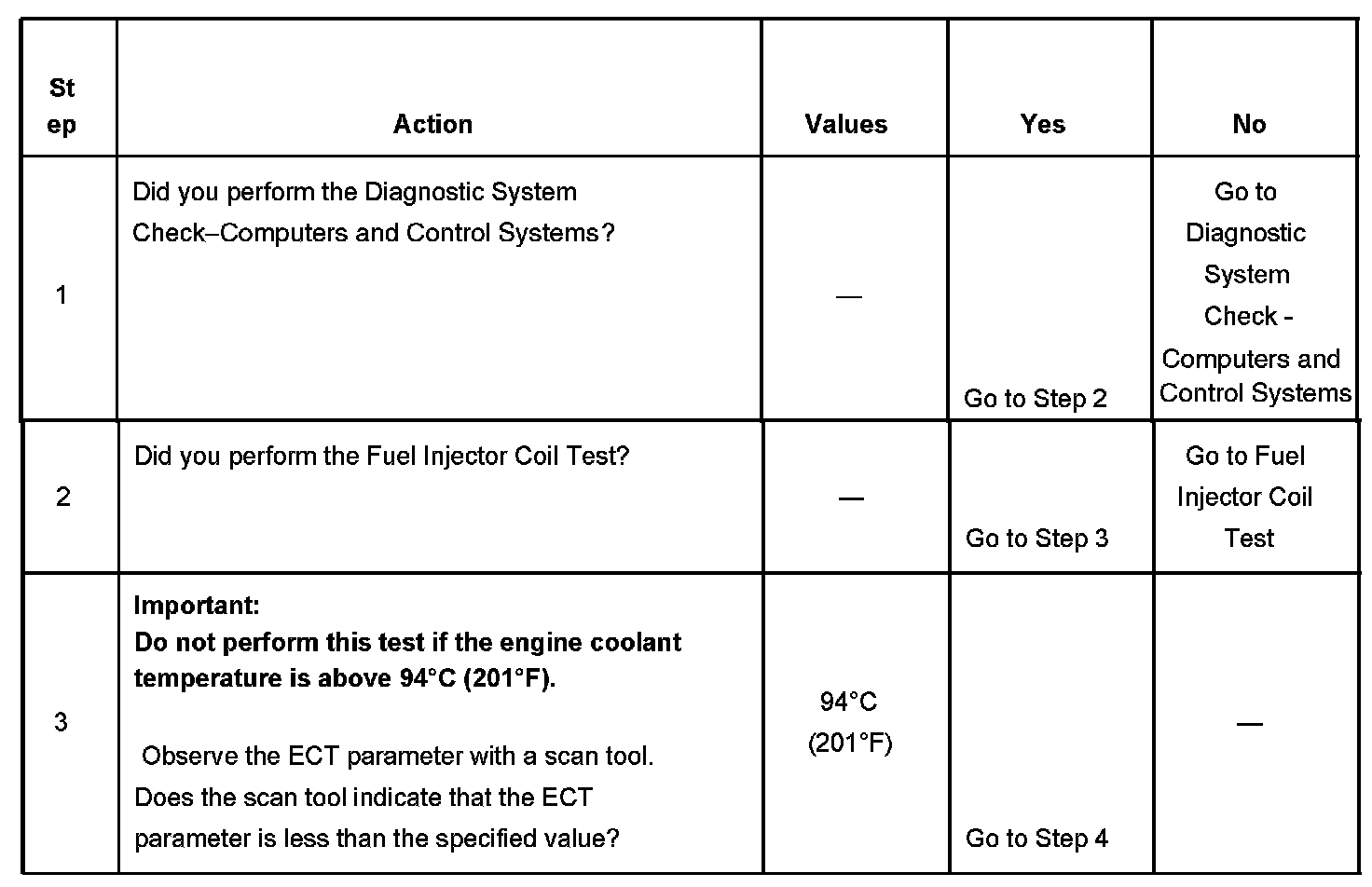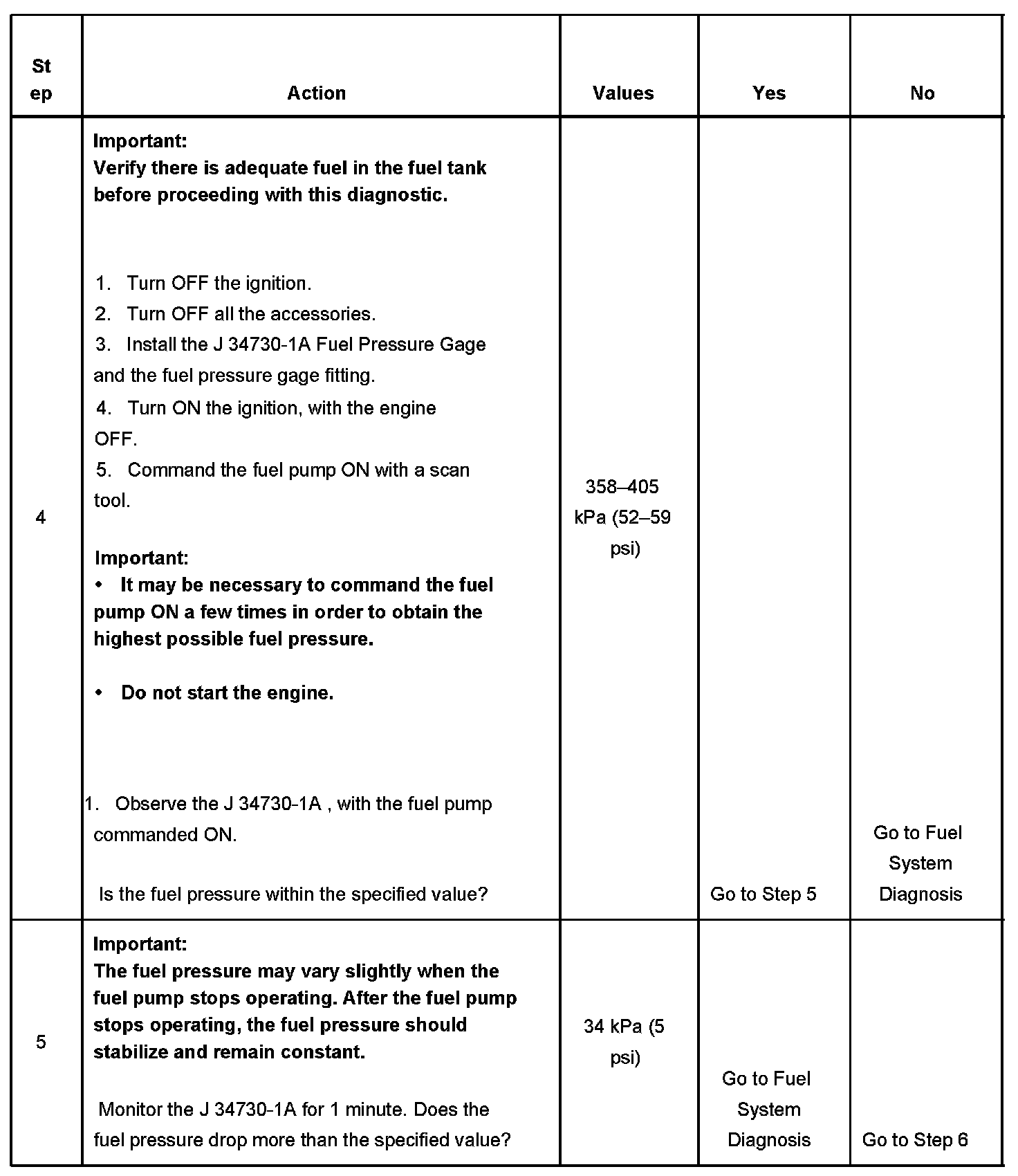 3. The engine coolant temperature must be below the operating temperature in order to avoid irregular fuel pressure readings due to hot soak fuel boiling.