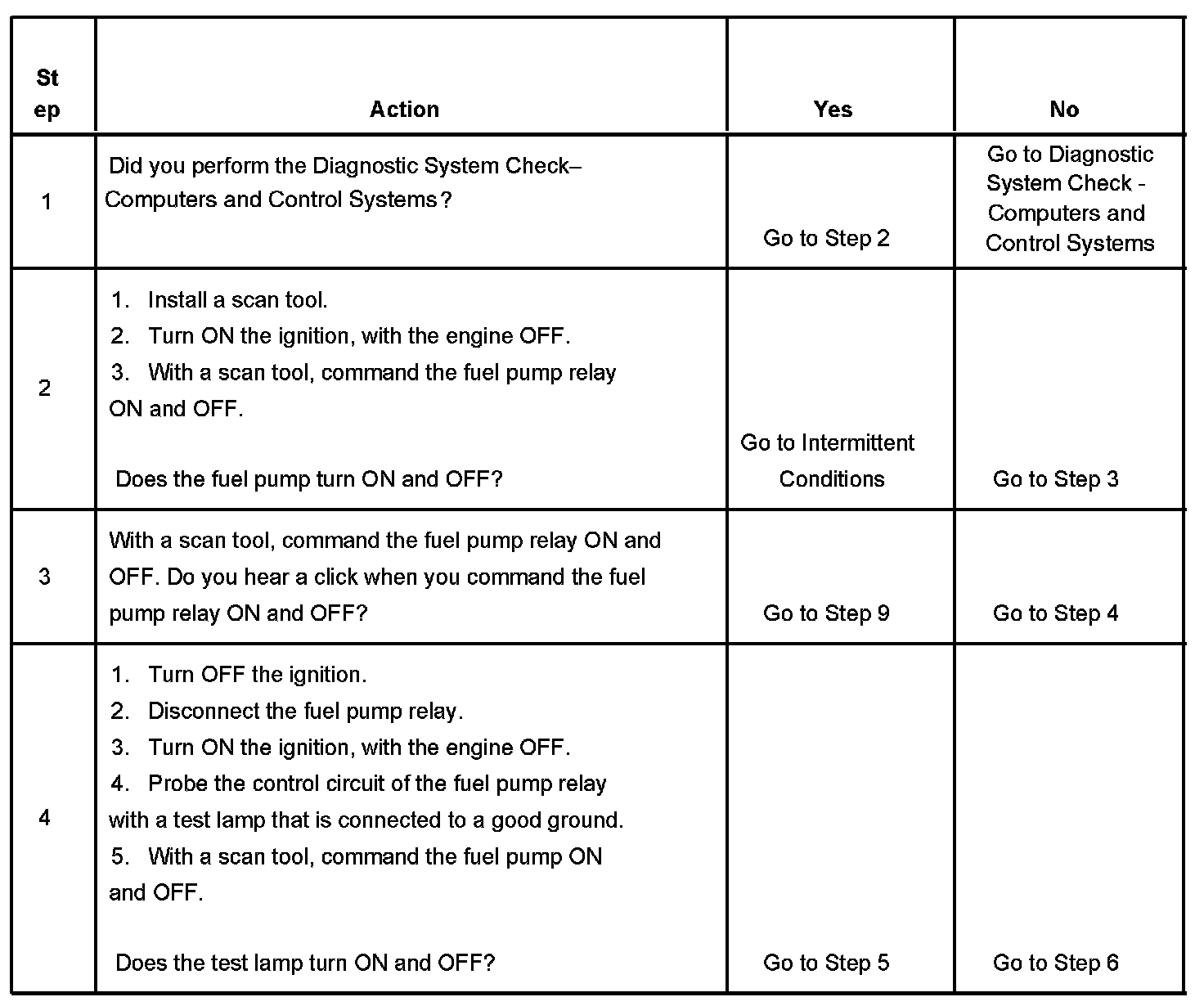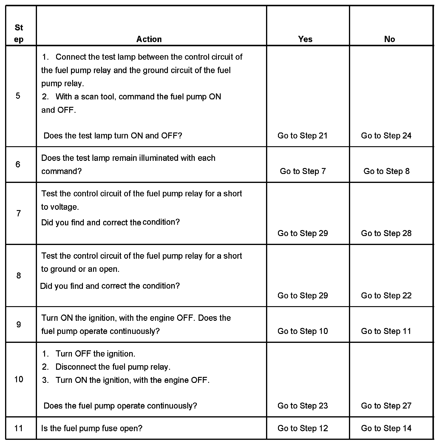 5. This step tests for an open in the fuel pump relay ground circuit.