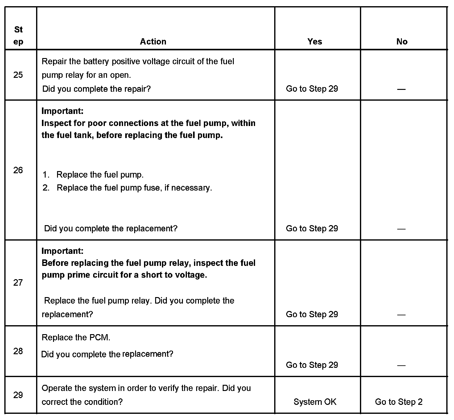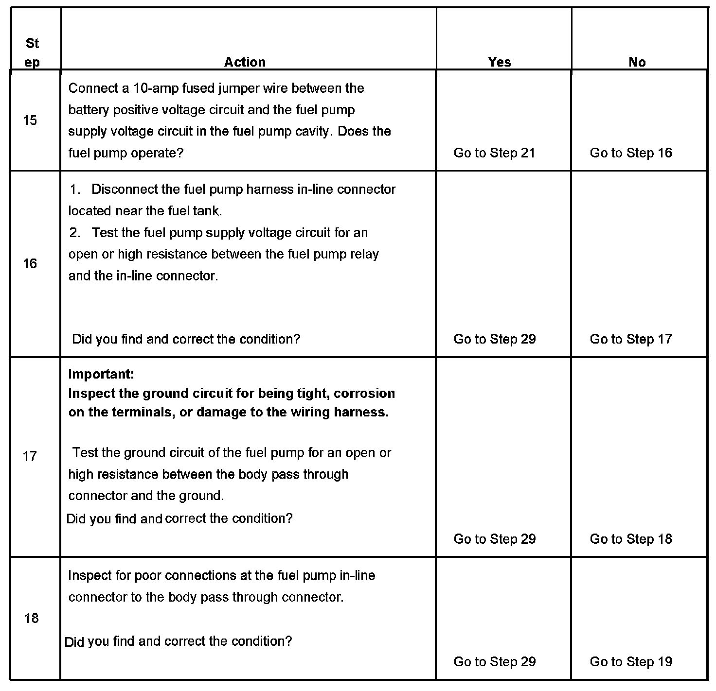 17. This step tests for an open or high resistance in the fuel pump ground circuit.