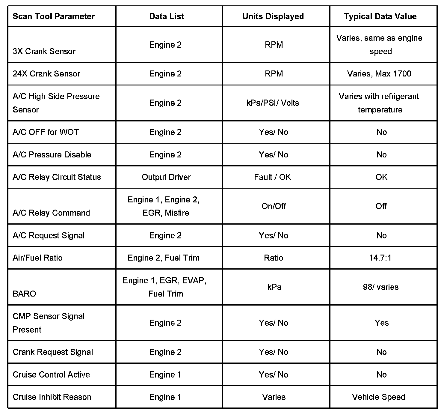 For scan tool parameter definitions, refer to Scan Tool Data Definitions. Scan Tool Data, Normal Values and Definitions