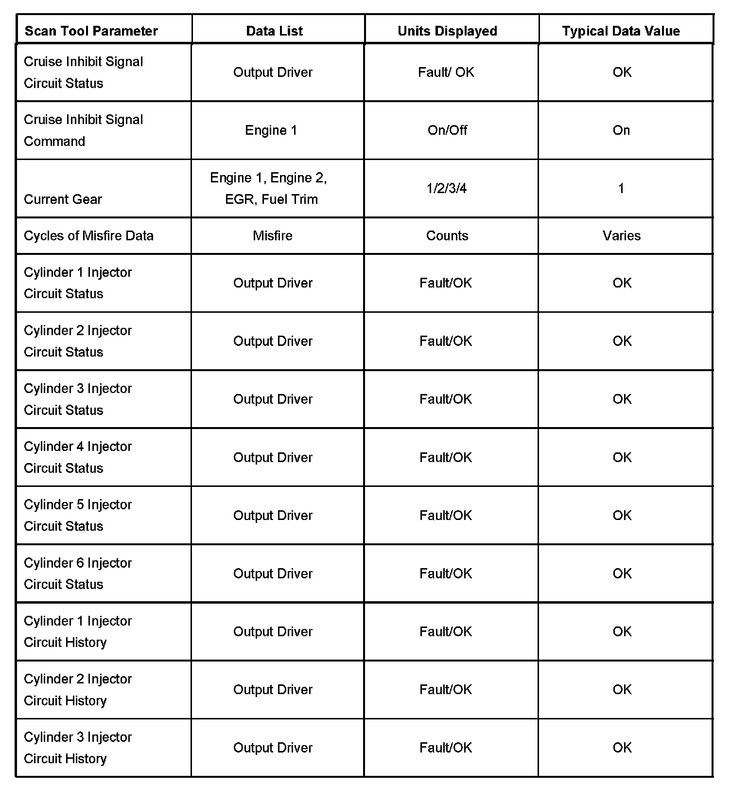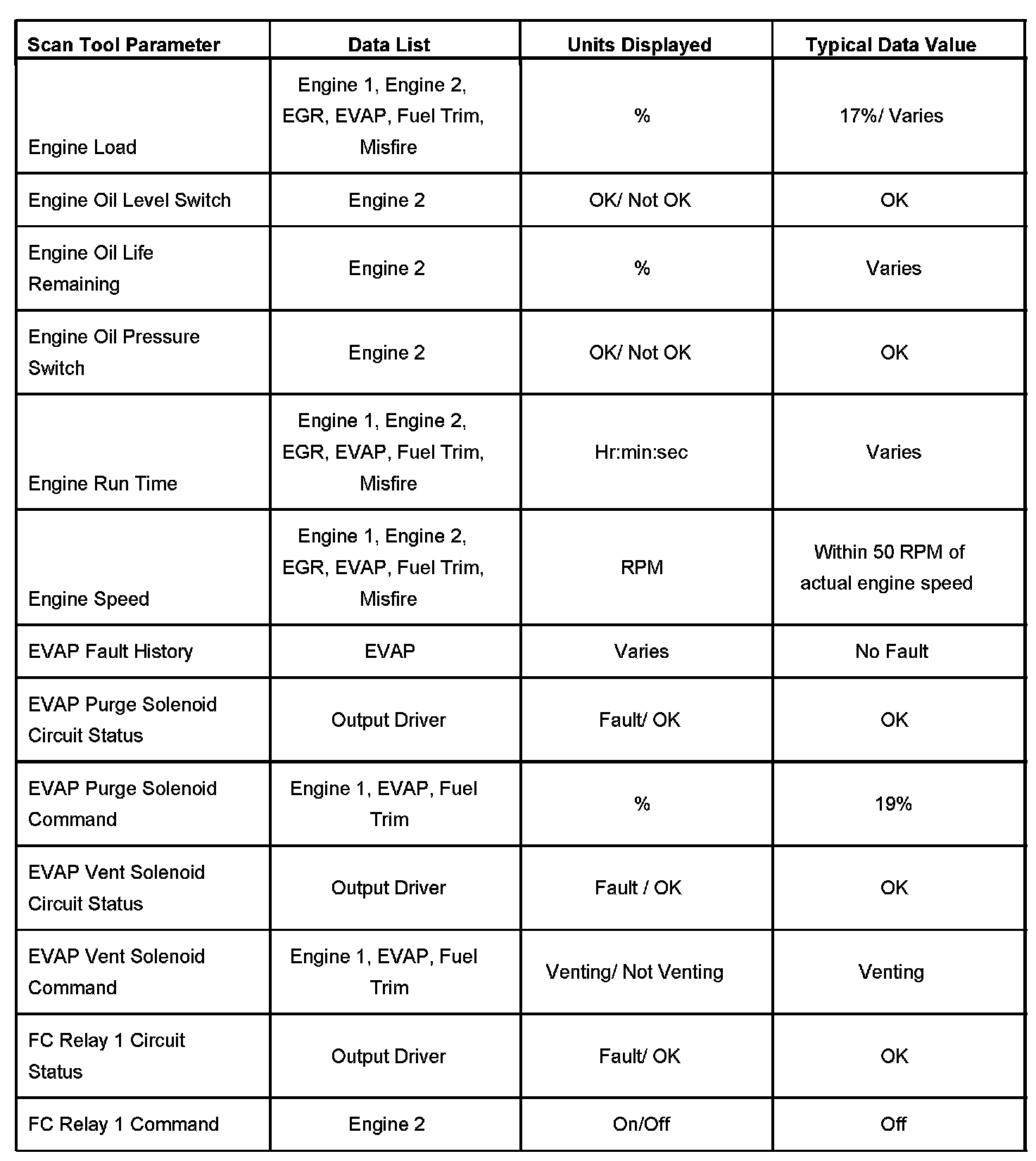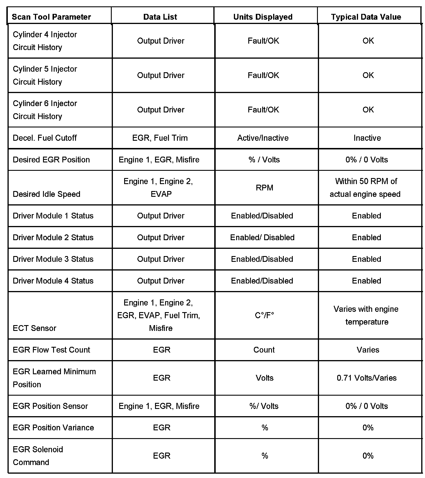 - EGR Data - Contains information specific to the exhaust gas recirculation (EGR) system. This list displays parameters required to verify proper EGR system operation