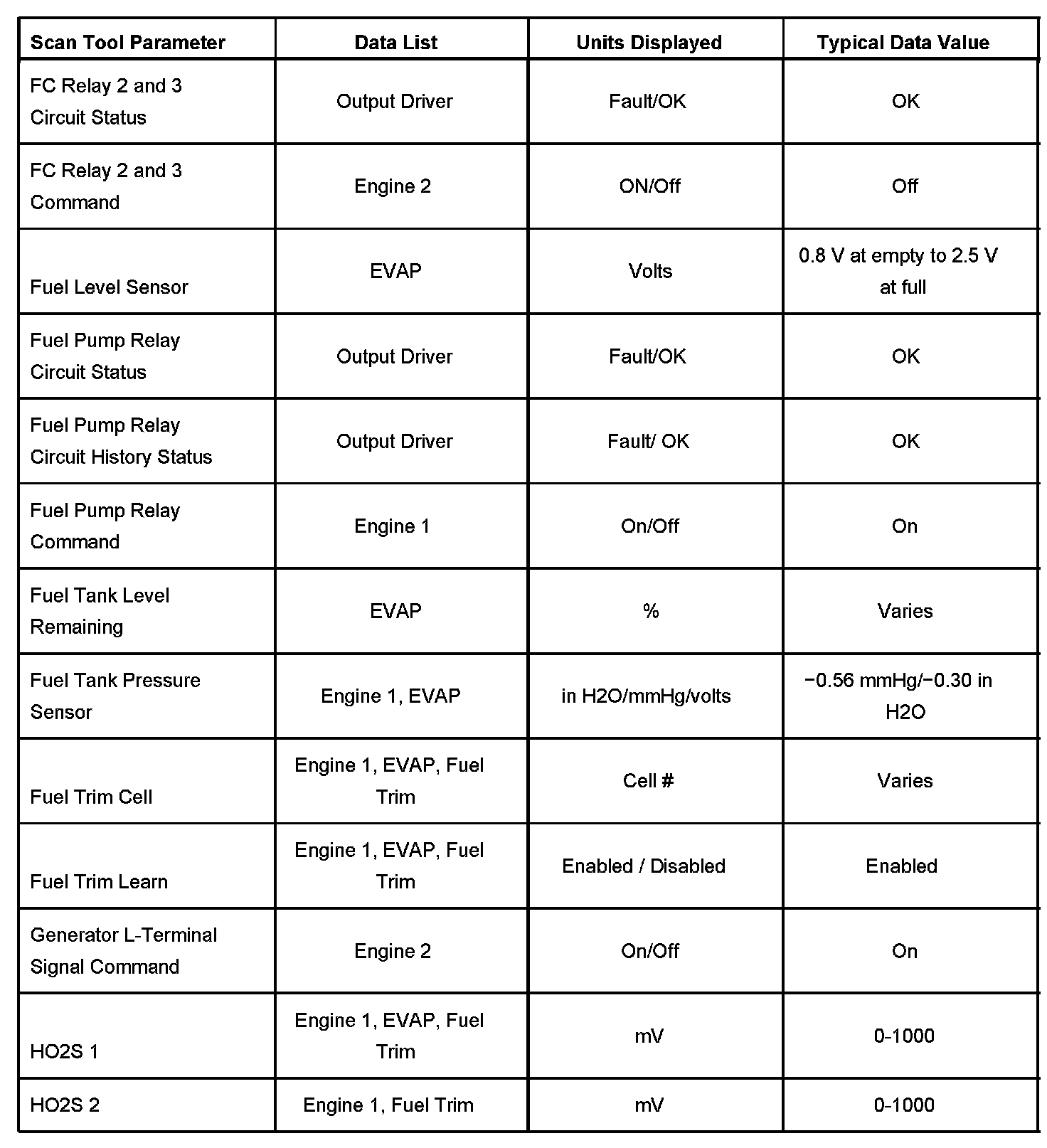 - Fuel Trim Data - Contains information specific to the fuel trim operation. Also displays parameters required to verify proper fuel trim operation.