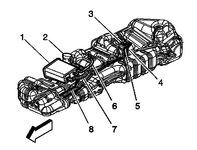 3. Connect the EVAP canister purge pipe (8) to the EVAP canister (1).