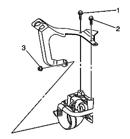 6. Remove the nut (3) and bolts (1, 2) holding the accelerator cable bracket to the throttle body.