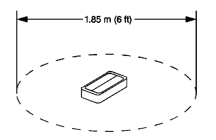6. Clear a space on the ground about 1.85 m (6 ft) in diameter for deployment of the inflator module. If possible, use a paved, outdoor location free of activity. Otherwise, use a space free of activity on the shop floor. Ensure that you have sufficient ventilation.